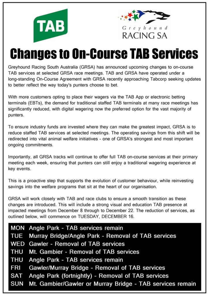 Green is looking at “The Ember”, a non-penalty series which will be run over 324 metres for the best 16 SA-trained greyhounds. Two $2095 heats will be conducted on Saturday, December 13 with the $10,000 final run on Thursday, December 18.