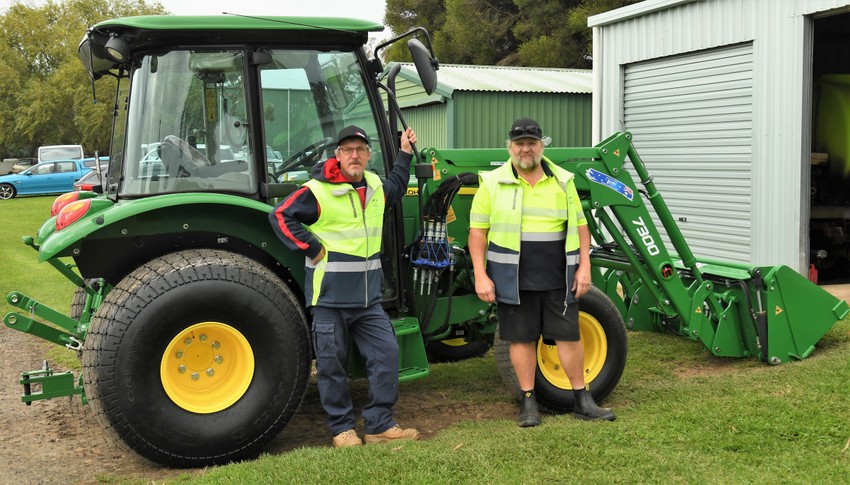A John Deere 7300, now carrying the name of Terrence the Tractor, has recently arrived to boost the stocks of the Mount Gambier Greyhound Racing Club maintenance department. And the maintenance men – Tim Manterfield (left) and Mark Hall – were keen to show off the impressive piece of machinery at Sunday’s May 21 race meeting.