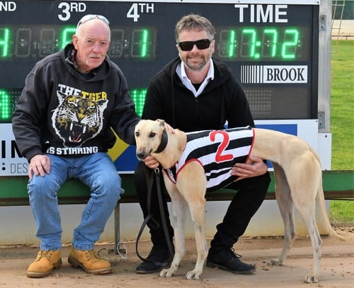 All told, the daughter of Dyna Tron x Azumi Touch won five races for Mackereth. Also on track, more often than not, had been his faithful band of supporters which included wife Kerry, kids Coco and Summer, mum Jo, Ian and Val Kenny and Gabriel Electrical past and present workmates.