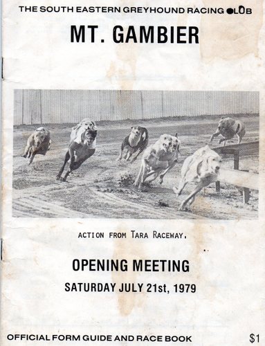 On Sunday, June 24, 1979 a Gala Opening Day was held at the Glenburnie’s “Tara Raceway” as a dress rehearsal for the South East’s first registered greyhound meeting set down for July 21, 1979. The first race run was won by Aqualair, trained by Ralph Patzel of Mount Gambier. Calling all the action was George Kay while six bookmakers were fielding.